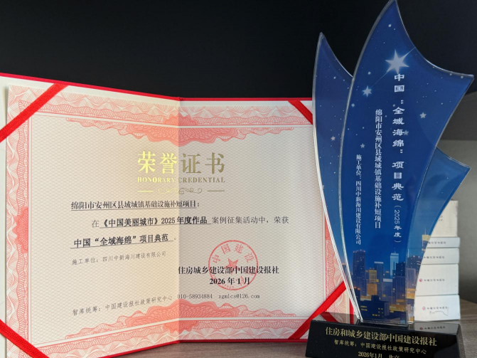 1月22日,在《中国美丽城市》2025年度作品案例征集活动中,bw必威西汉姆联官方网站建工集团事业部中新海川公司匠心承建的“绵阳市安州区县域城镇基础设施补短项目”脱颖而出,荣获中国“全域海绵”项目典范称号。